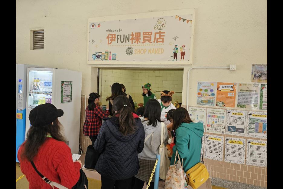 學校一向積極推動環境教育,為讓大家及子女體驗「裸買活動」(即購物時避免使用不必要的包裝,減少浪費) ,本校舉行「伊FUN裸買店」義賣活動。感謝各位家長、老師及同學踴躍支持,活動完滿結束。當天所有收入扣除成本後,如有盈餘將撥作本校學生學習之用