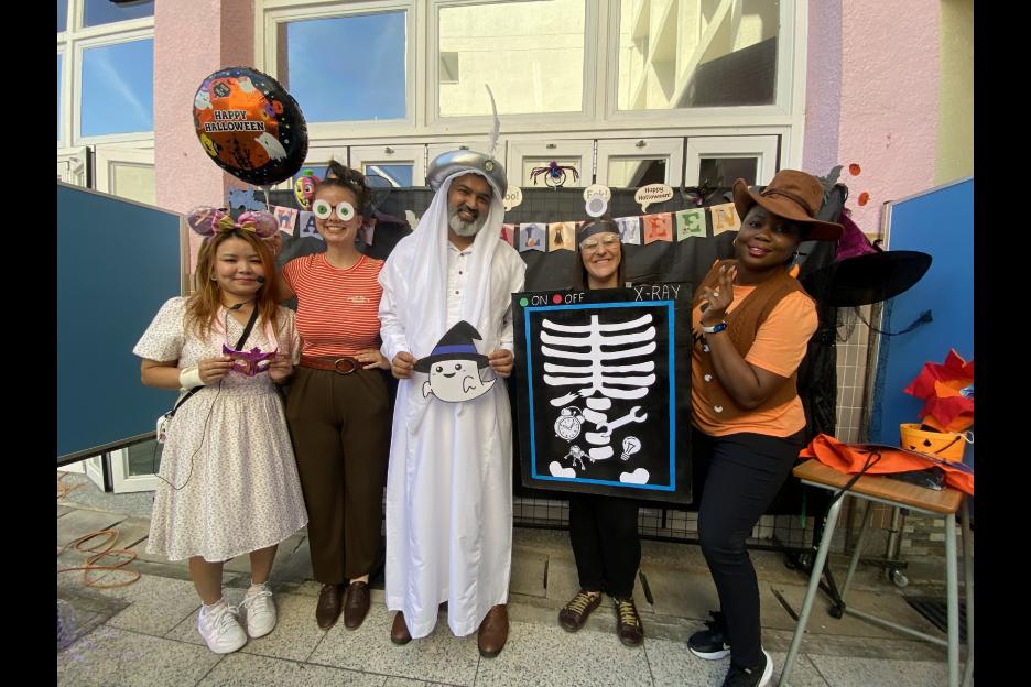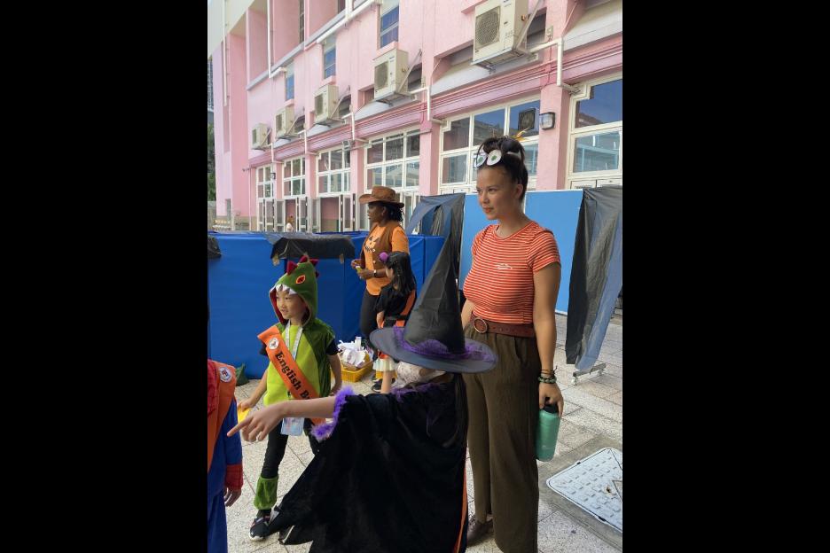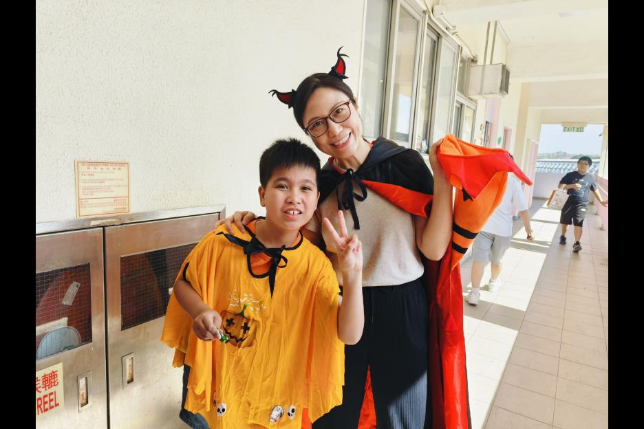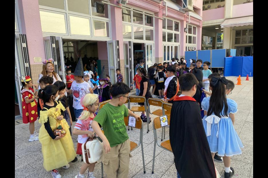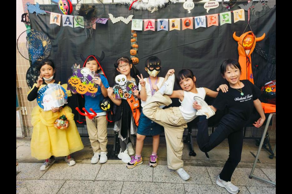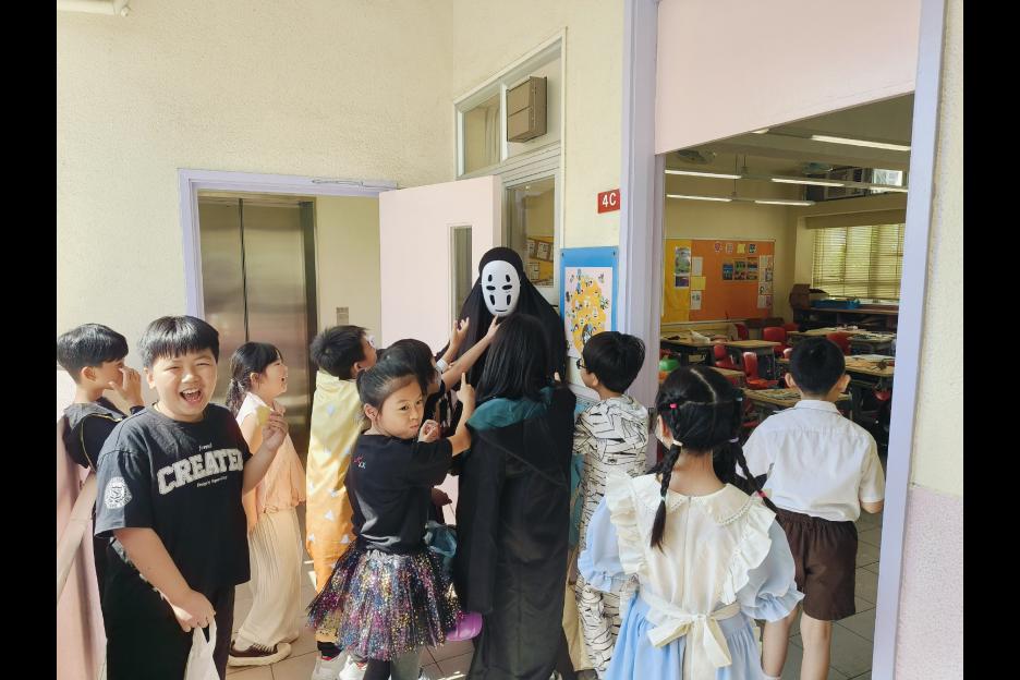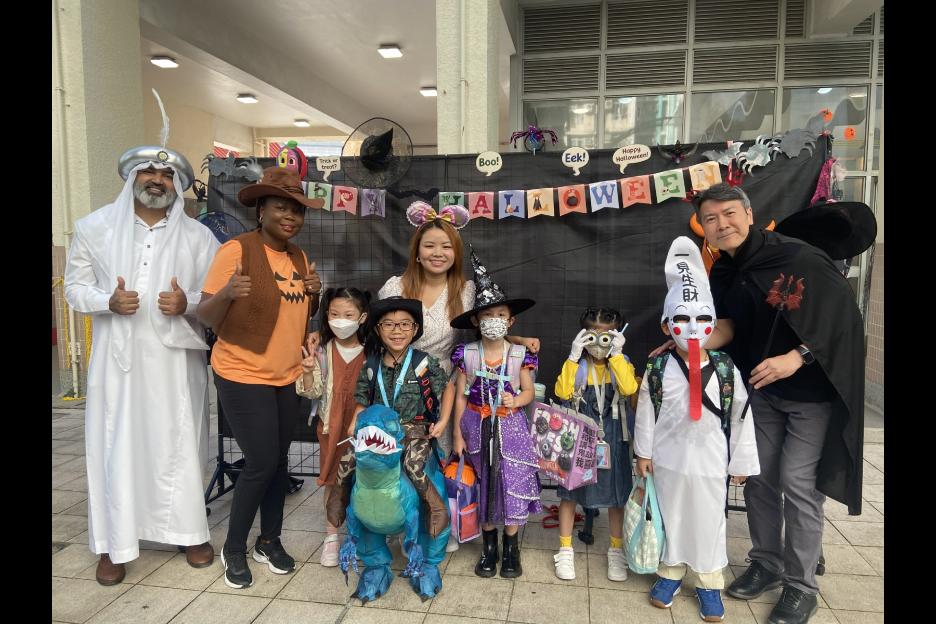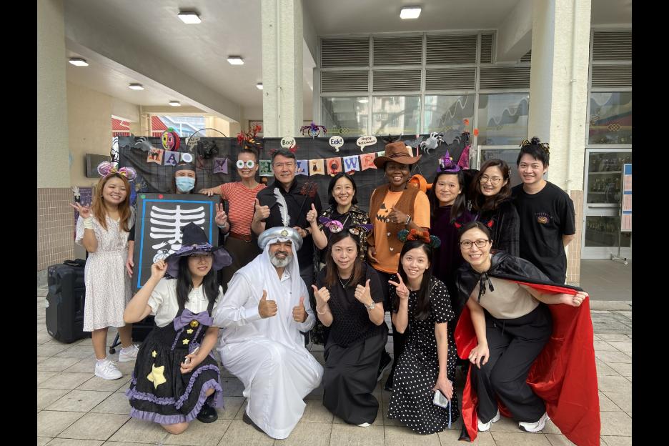 全校一起穿著萬聖節服裝,一起進行trick-or-treat, 並參加趣味英文攤位遊戲。