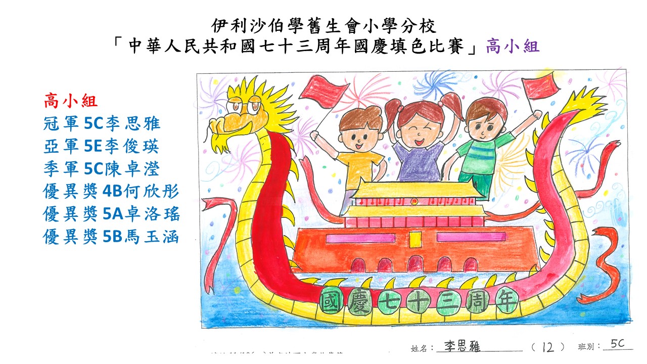 「中華人民共和國七十三周年國慶填色比賽」高小組