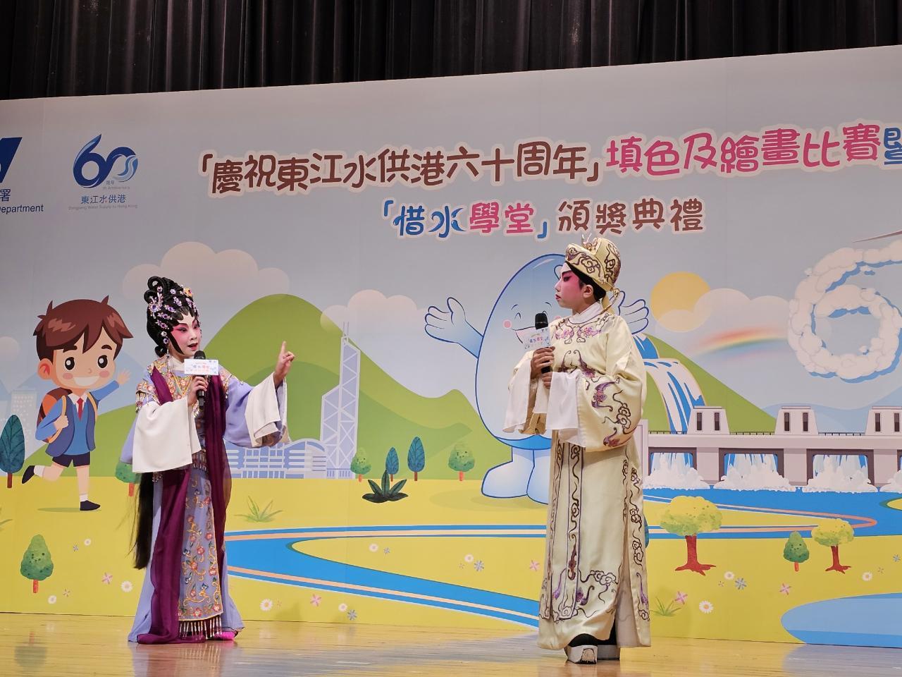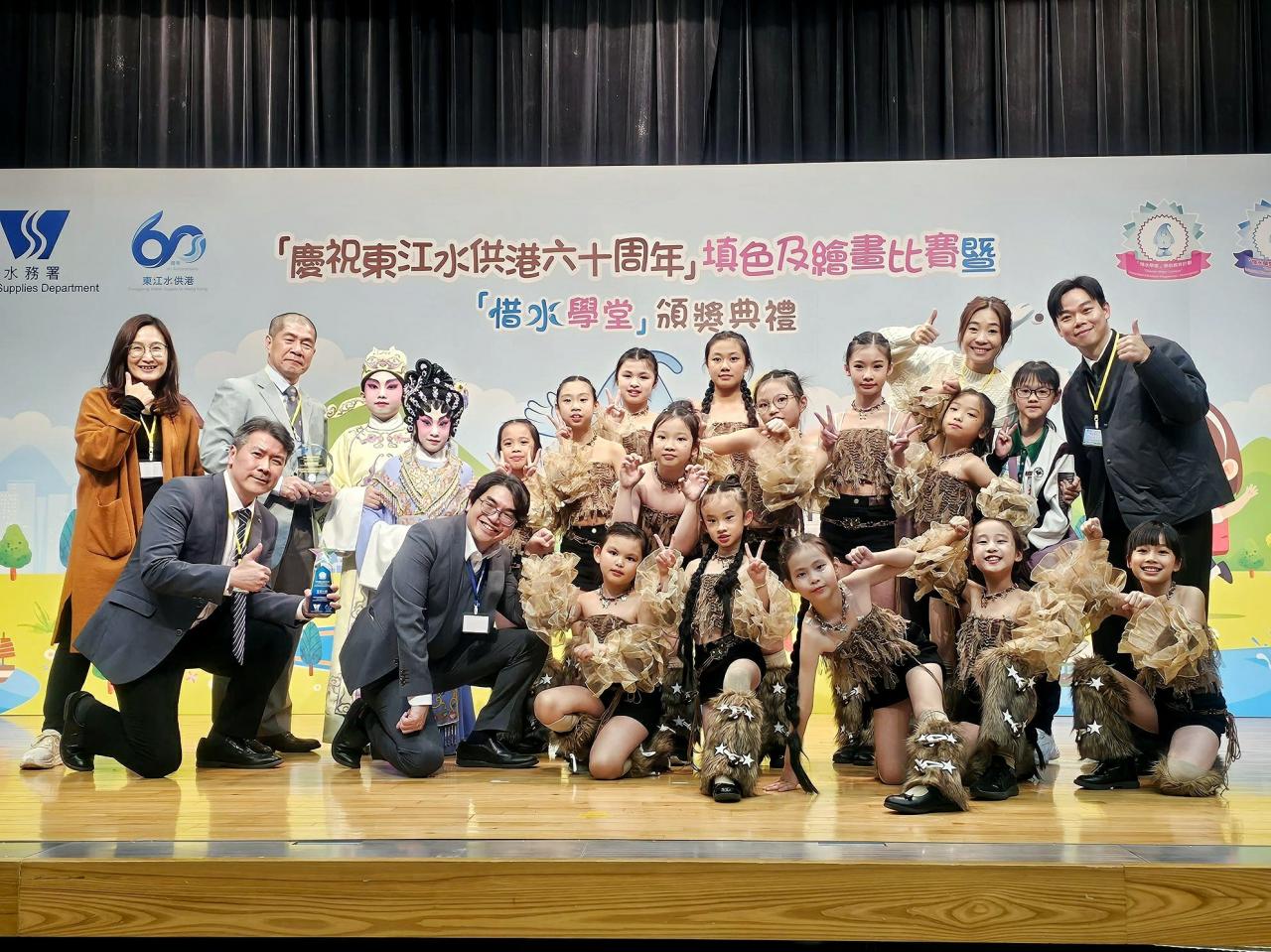 活動簡介 | 為鼓勵小學生從小實踐節約用水生活,水務署於2015/16學年推出「惜水學堂」小學教育計劃(下簡稱「惜水學堂」),並於2019/20學年優化教材套,使教學內容更多元化,讓參與師生透過一系列的考察活動、教案、課堂工作紙、教學影片以及遊戲等,共同實踐節水任務,加強學生對香港及全球水資源問題的認知和關注。「惜水學堂」設有獎勵計劃,嘉許積極參與節約用水活動的學校及師生,期望使校園內的節約用水文化得以延續。 由於榮獲大會大獎,因此獲邀成為當天的表演嘉賓(本校K-pop及粵劇表演)。 |