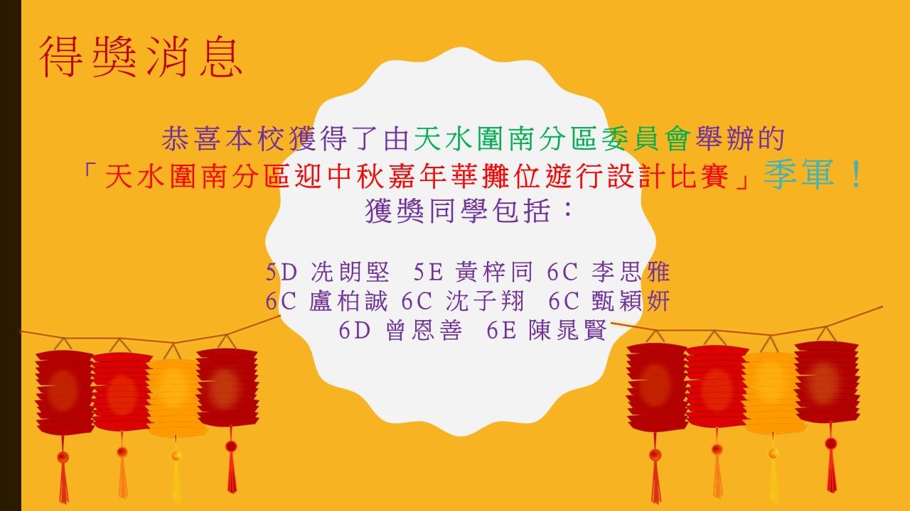 天水圍南分區迎中秋嘉年華攤位遊行設計比賽」季軍