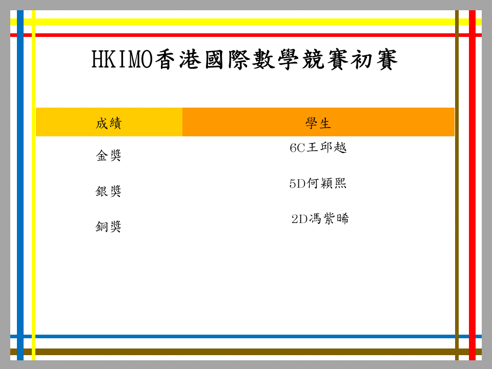 金獎 6C王邱越 銀獎 5D何穎熙 銅獎 2D馮紫晞