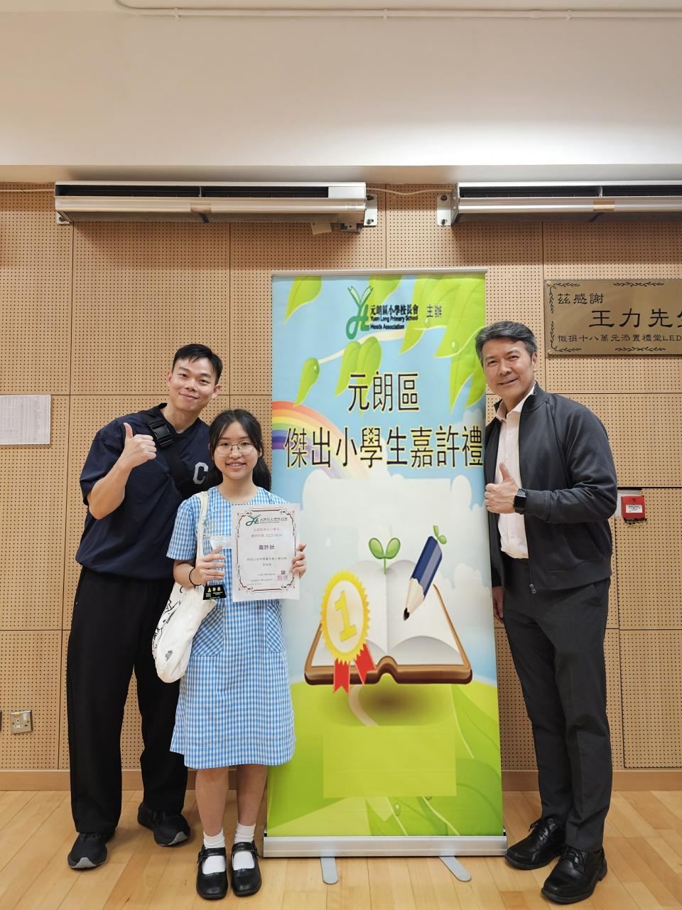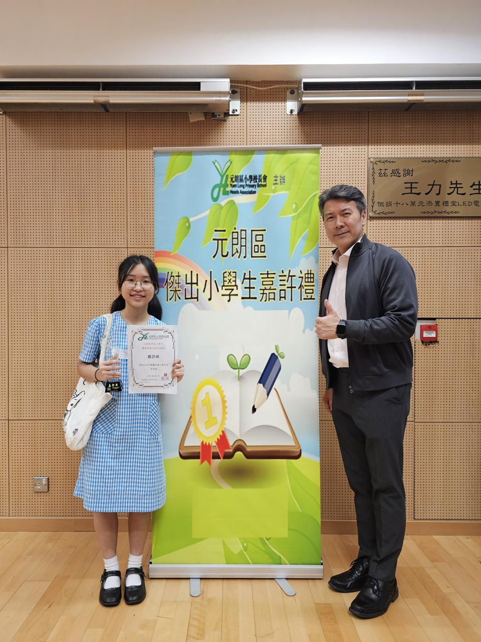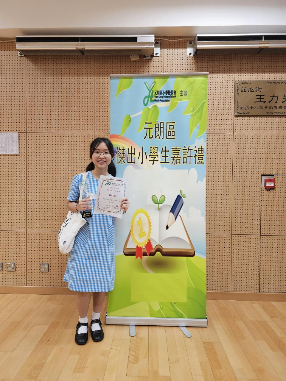 恭賀6E 李俊瑛同學獲嘉許!獲得由元朗區小學校長會主辦的「元朗區傑出小學生嘉許計劃」元朗區傑出學生,肯定她在學業、品德、課外活動及社區服務上都有非常優秀的表現。