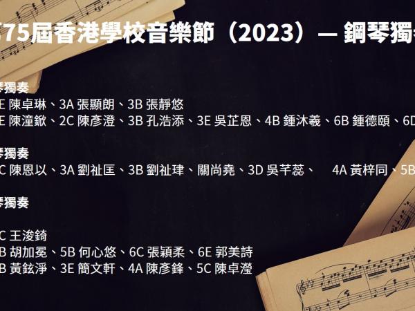 第75屆香港學校音樂節(2023)— 鋼琴獨奏