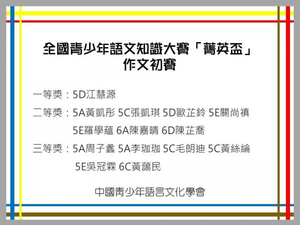 全國青少年語文知識大賽「菁英盃」作文初賽