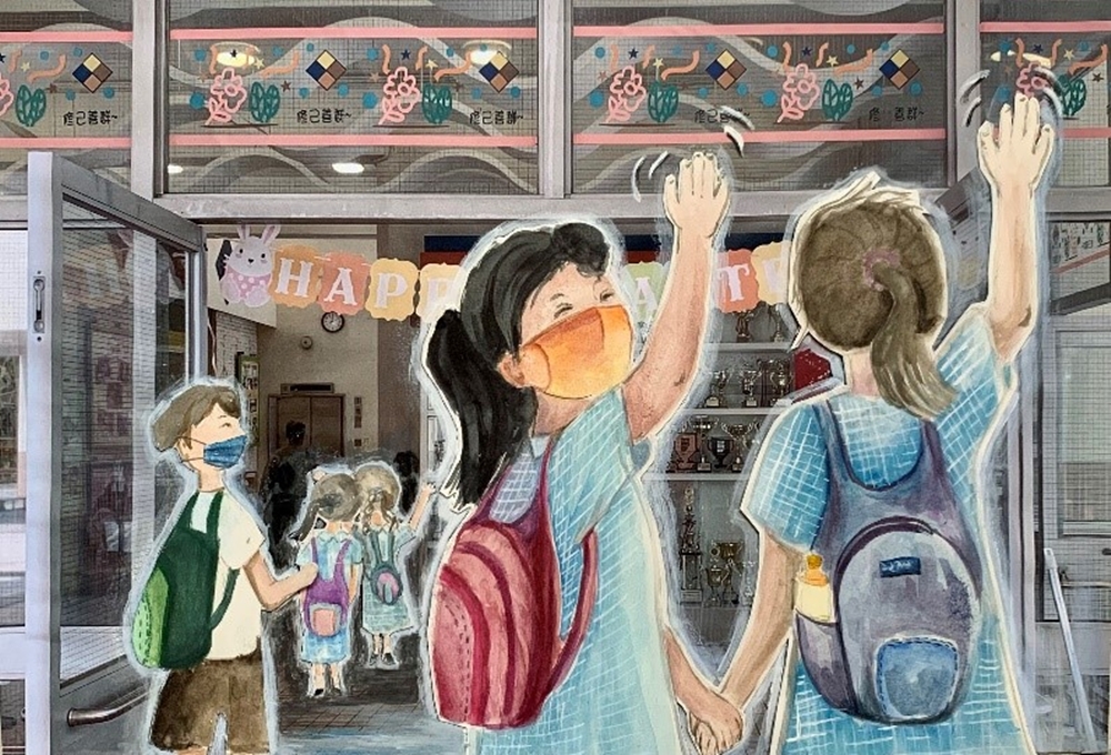 學校是我第二個家,我很喜歡上學。這六年回「家」後也習慣跟媽媽揮手道別。小學生涯將完結,就讓這片段留在我畫筆下。