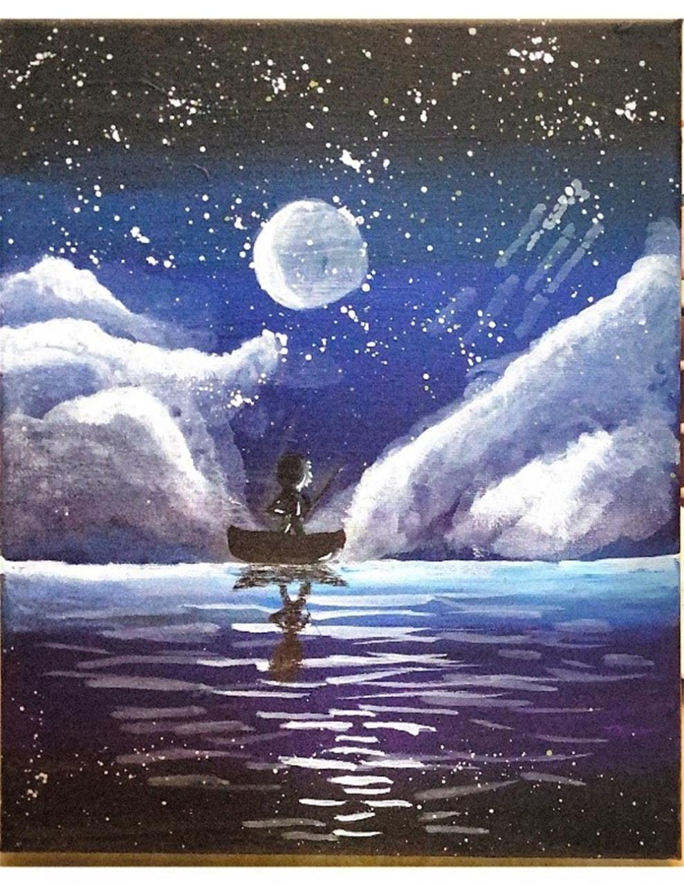 這作品中,我猶如畫內的人一樣,划著小船,看著明月,一步一步地追尋夢想,找出我的未來。