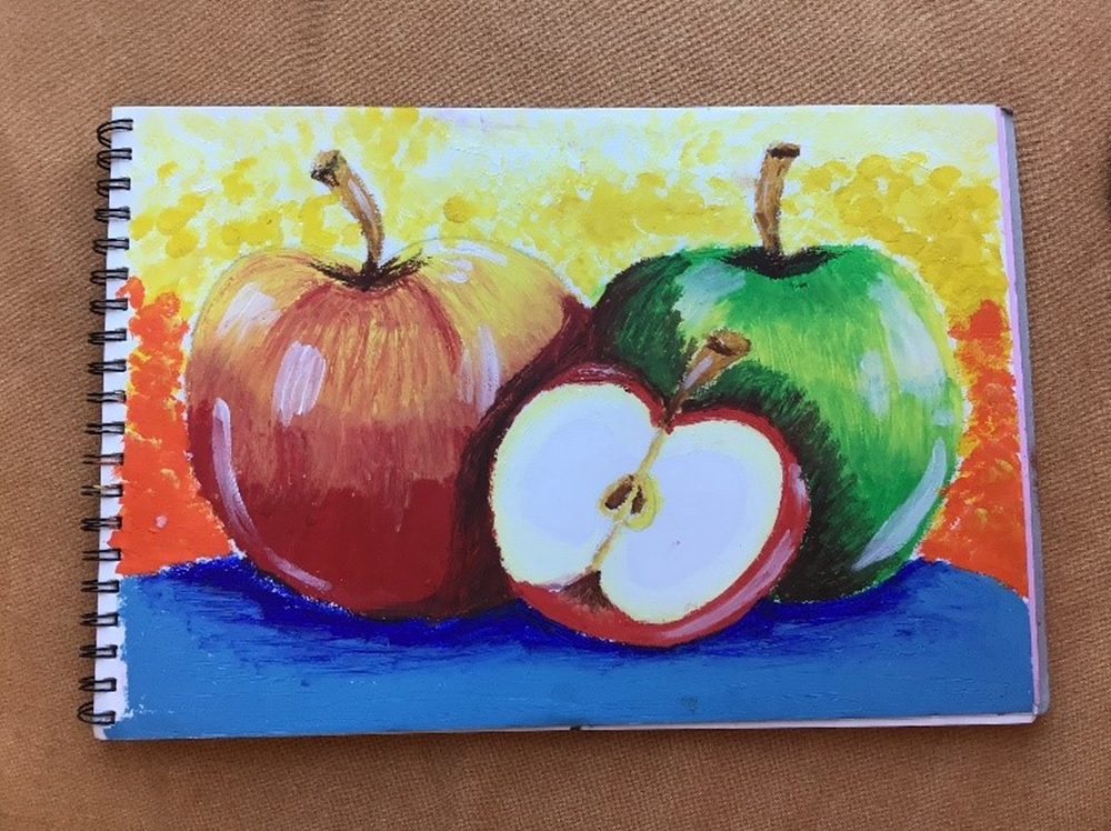 在某一天,我看見家裏有色澤豐富的蘋果,所以就創作了這幅畫。
