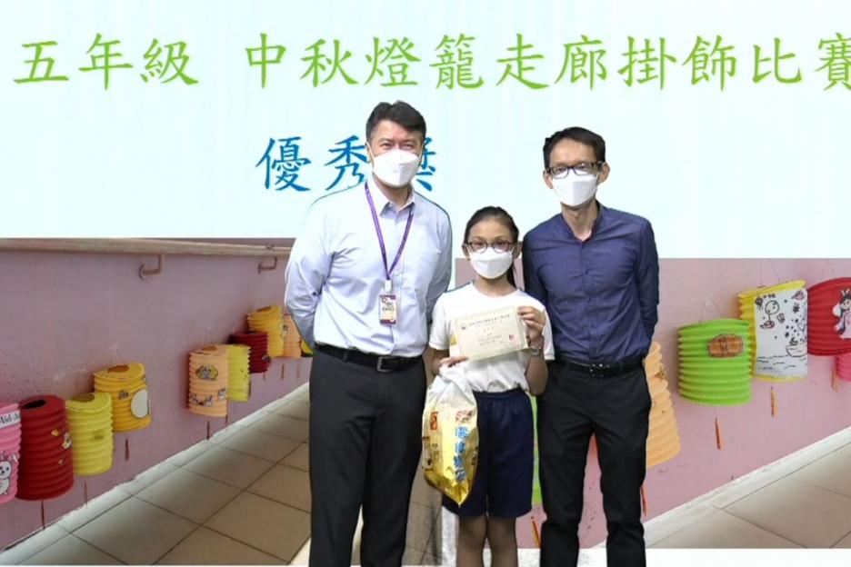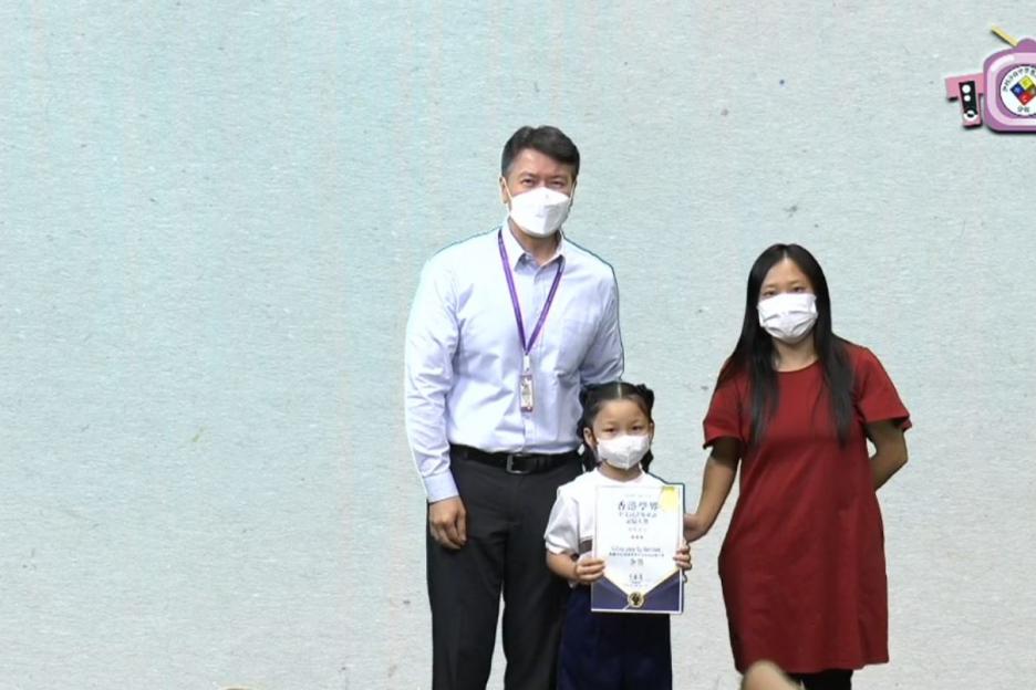 由於疫情關係,本校早會於校園電視台直播到課室進行。