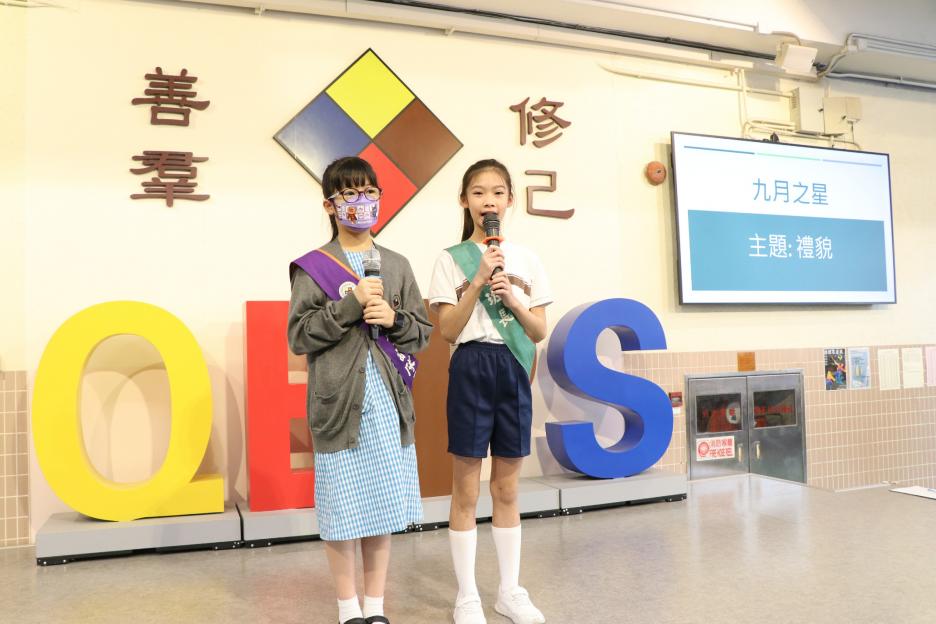 因小六呈分試而暫停了兩次的早會,終於可以在今天繼續。常識科的「時事KOL」在台上討論新聞熱話,亦和在場學生進行問答討論,看來同學們對時事常識都十分感興趣。接着,由學生介紹學校的新增設備「夾禮物機」的使用方法和得獎方式。另外,培育組亦向各班在九月份獲得「禮貌之星」的學生進行頒獎。最後,是由視藝科向參加校外比賽而得獎的學生進行頒獎。