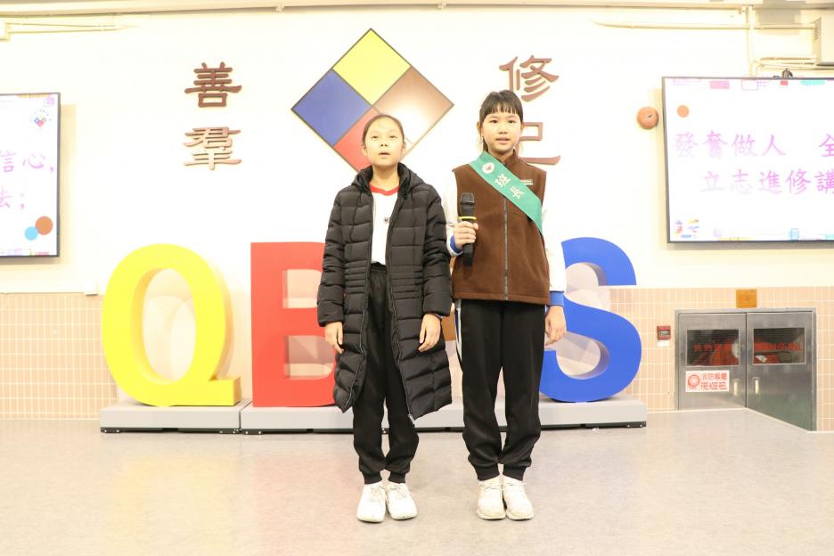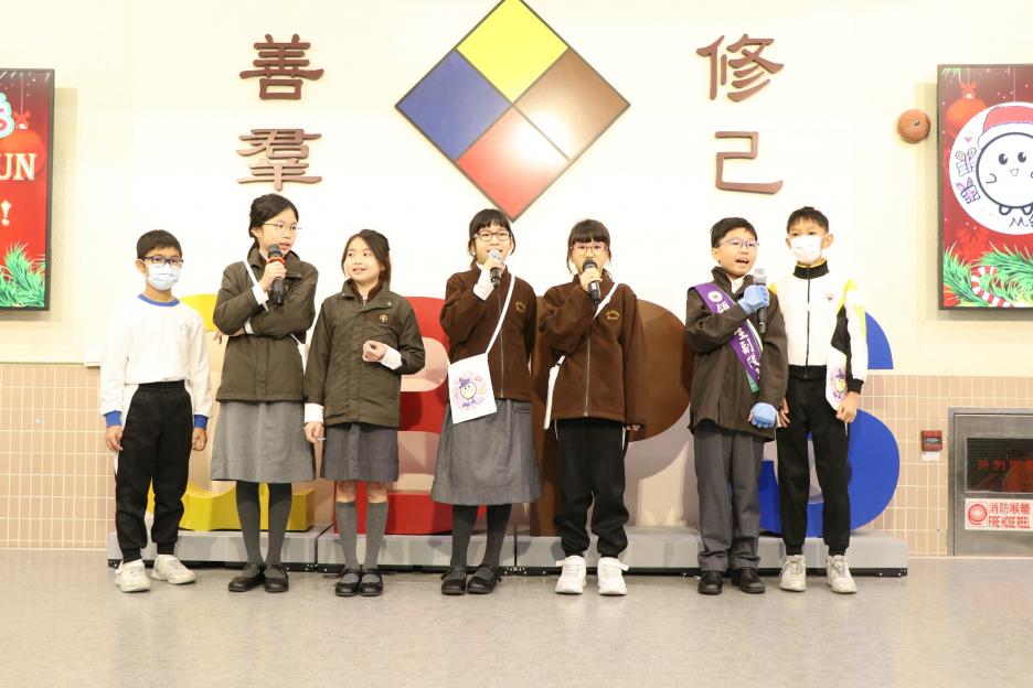 又是一個節目非常豐富的早會,先有戴老師的「勤勞」月訓分享,好讓同學明白其重要性;然後是中文科的「小小演說家」分享「冬至」的典故。不少同學在中英文朗誦比賽、籃球賽事和「STEAM」的比賽中獲得了冠、亞軍和優異等良好成績,非常值得鼓舞。最後是「數學特攻隊」的「估估校長身高」活動揭盅和「Green Starter」的「裸賣」活動宣傳。請大家在這兩天踴躍參與由學生籌備的「裸賣」活動和由家教會籌備的義賣活動。
