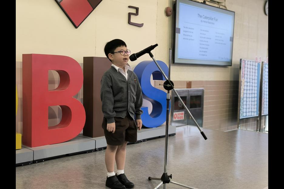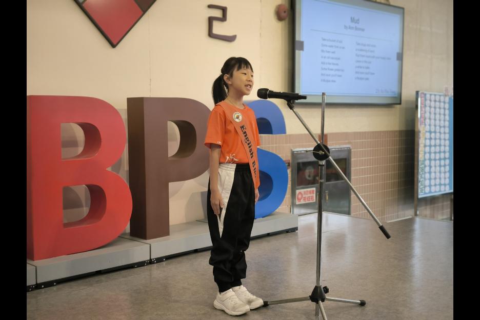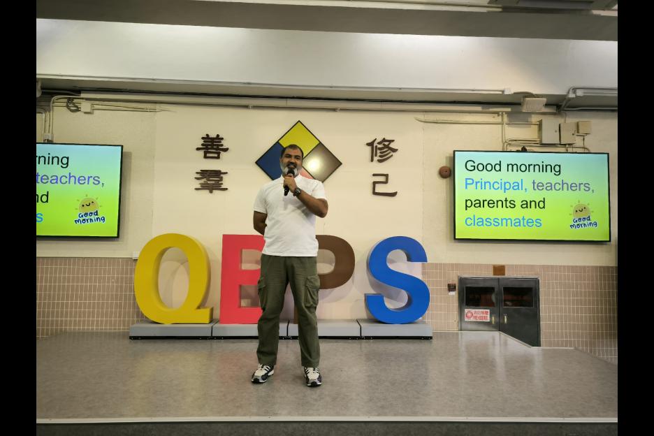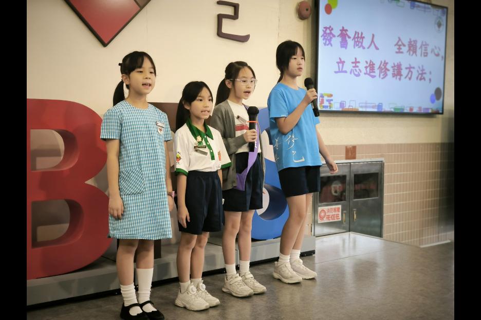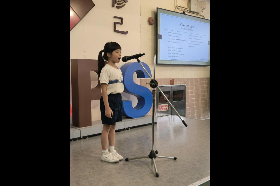 今天是英文早會,由幾位參加了校際朗誦比賽的同學為我們進行預演,他們用心準備和自信的表現值得我們學習,預祝他們比賽順利,勇創佳績!
