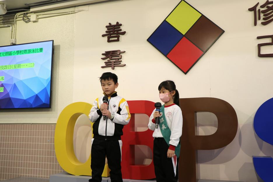 因六年級呈分試的關係,我們暫停了一次早會。來到今天星期五的英文早會,首先是英文科的閱讀獎項頒發,然後是二月之星「禮貌」的獎項頒發,最後是學界游泳比賽和「好學生選舉」的活動宣傳。