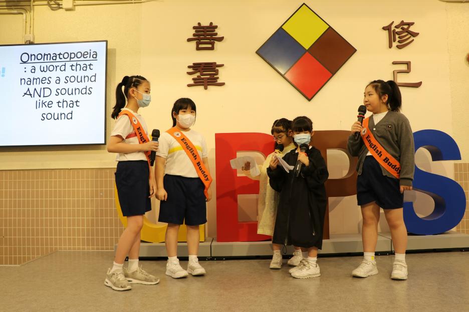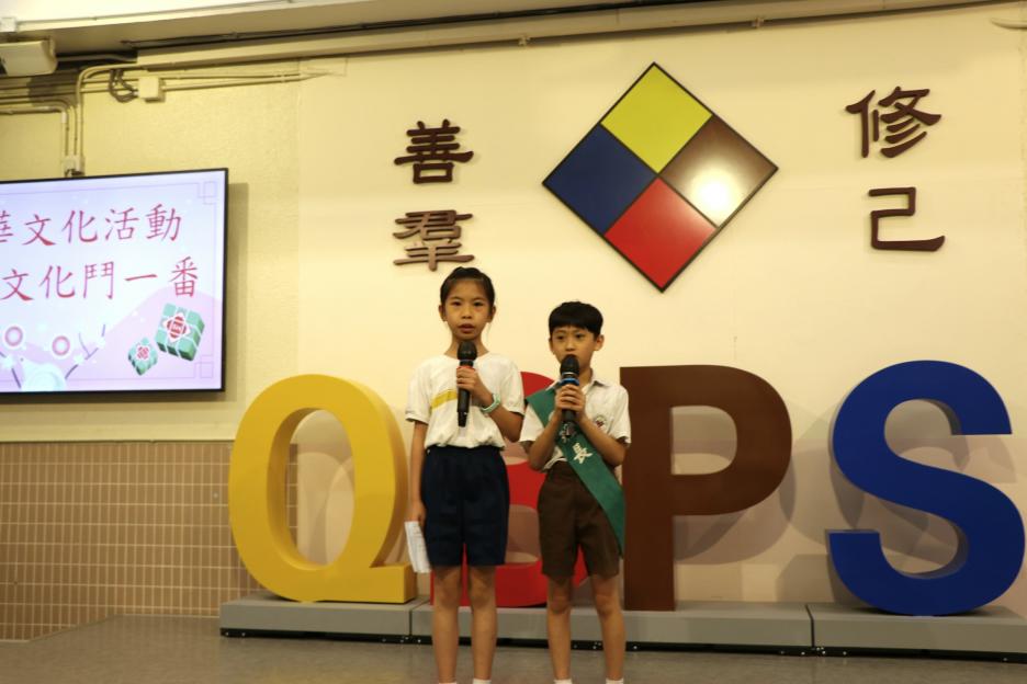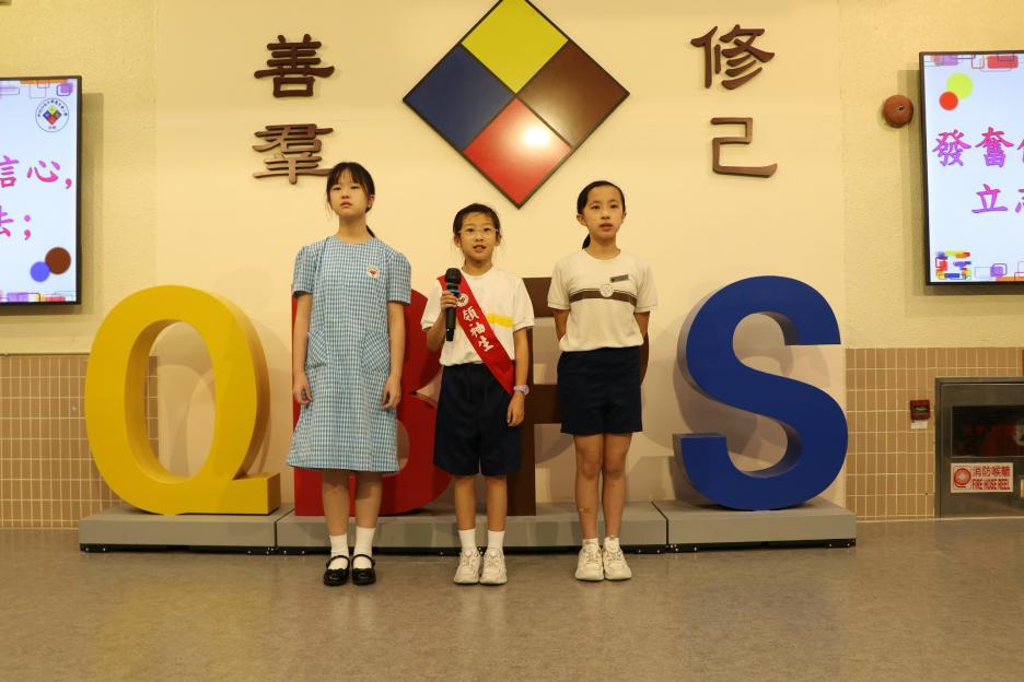 六年級今天需要參加「同根同心」的國內交流活動並早早出發了,所以早會沒有六年級的蹤影。今天英文早會由外籍老師帶領大家進行分享,然後是劉老師的閱讀分享。接着是,音樂科的頒獎和「中華文化鬥一番」的活動宣傳。