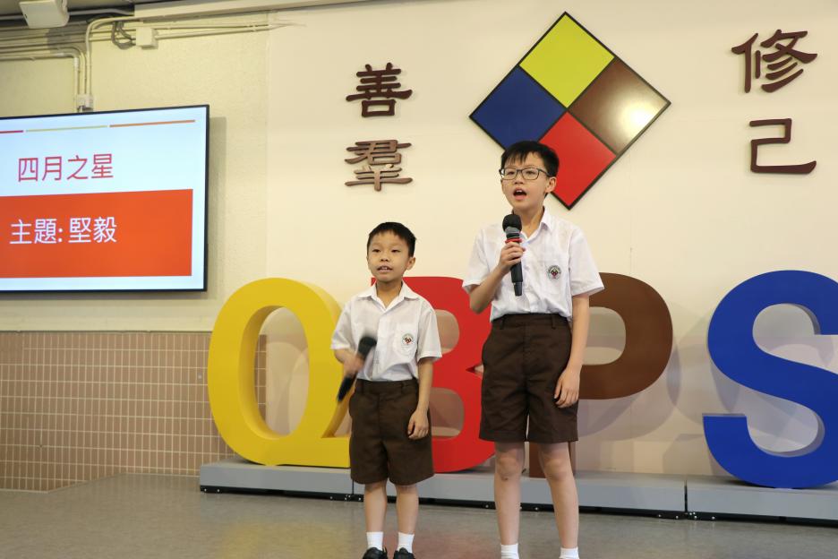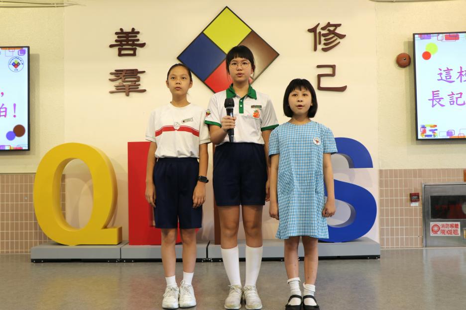 孝順的故事,然後是堅毅之星和體操隊的頒獎時間。最後由「走塑校園計劃」小學組冠軍的「Green Starter」向大家介紹正確的回收方法,希望同學多多了解,為環保進一分力,有關正確回收短片已上載到學校網站。