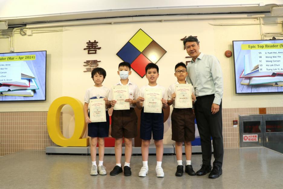 今天的英文科早會有大量的獎項頒發活動,首先頒發的是英文科校內閱讀及校外講故事比賽的獎項,然後是「數學特攻隊」在校外不同的比賽中獲獎。接着是音樂科和視藝科的頒獎,最後是家教會敬師活動的宣傳。