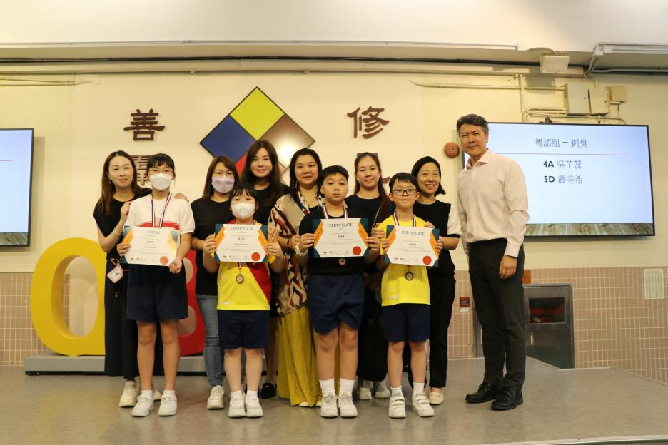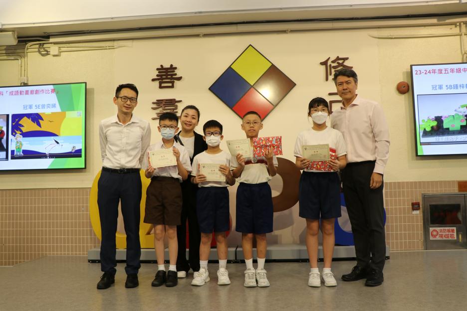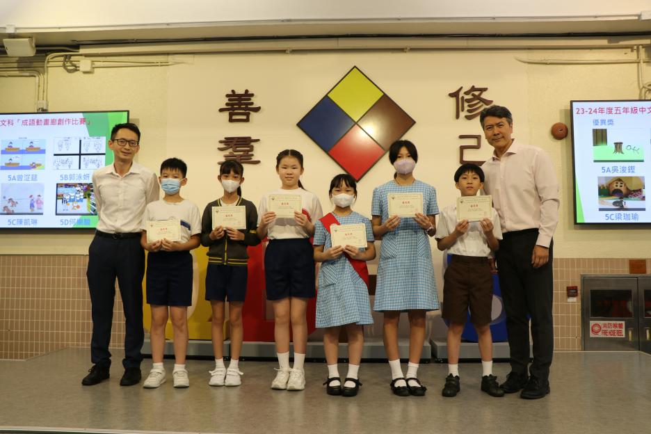 今天的普通話早會頒發了中文科「成語動畫廊」和「價值觀教育故事」演講比賽的獎項,最後是「凡星有你」的宣傳和分享。