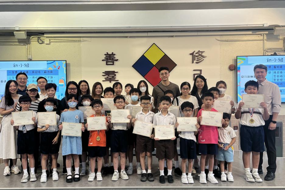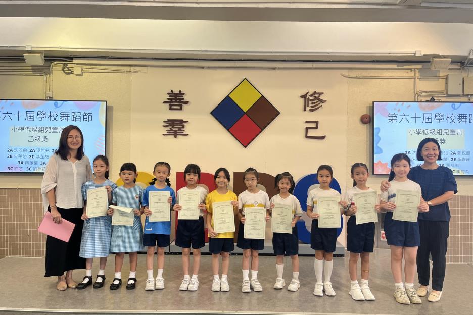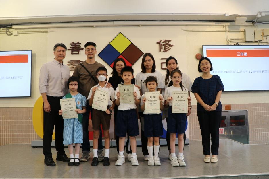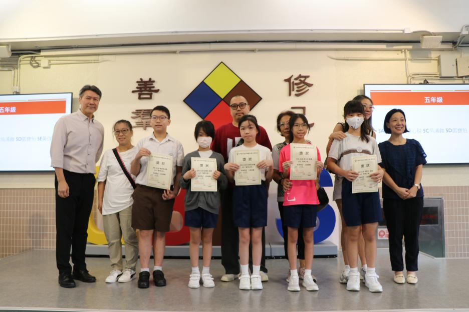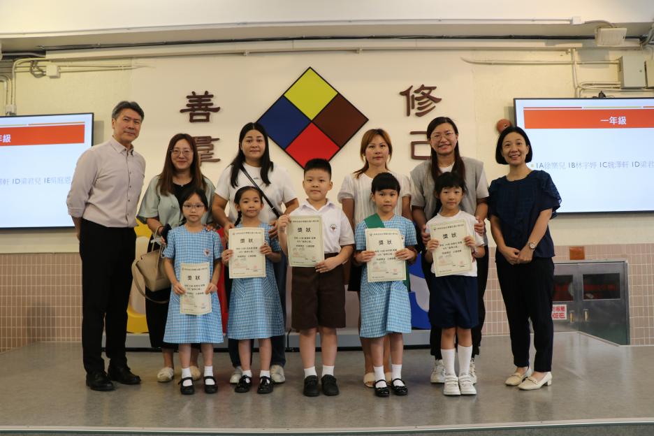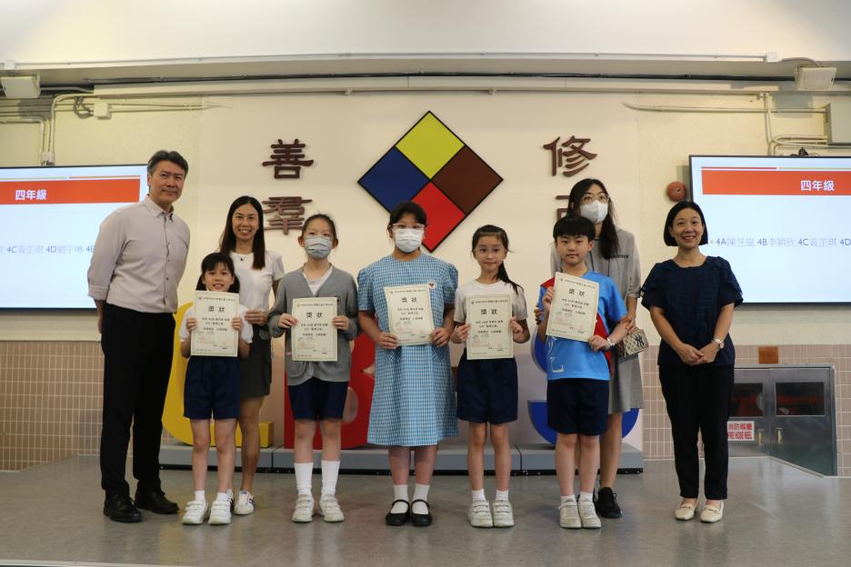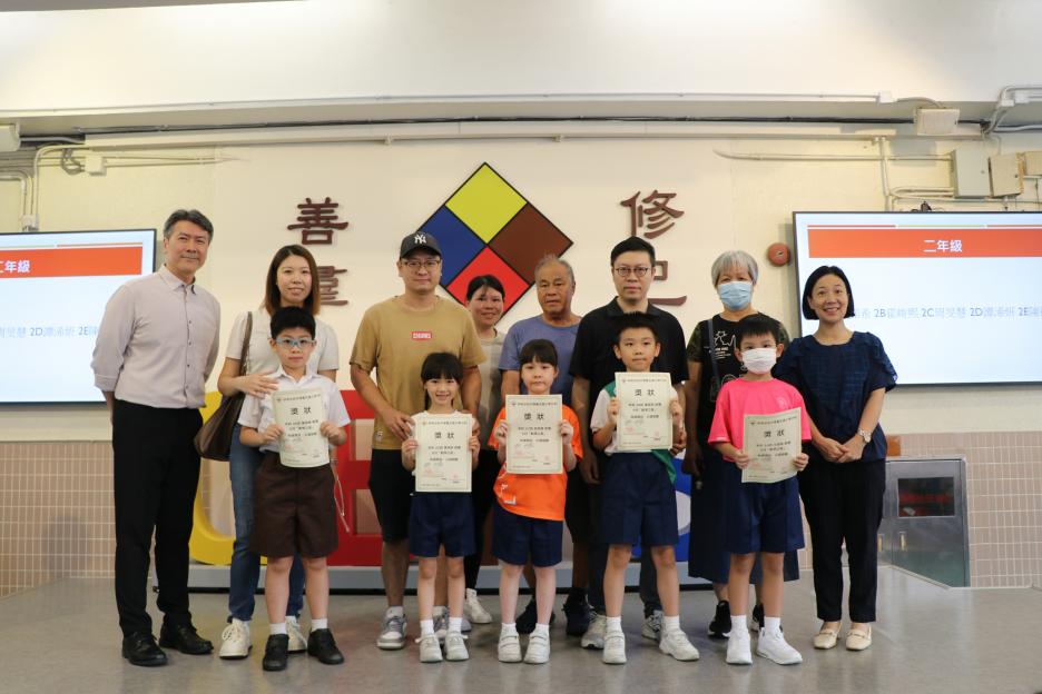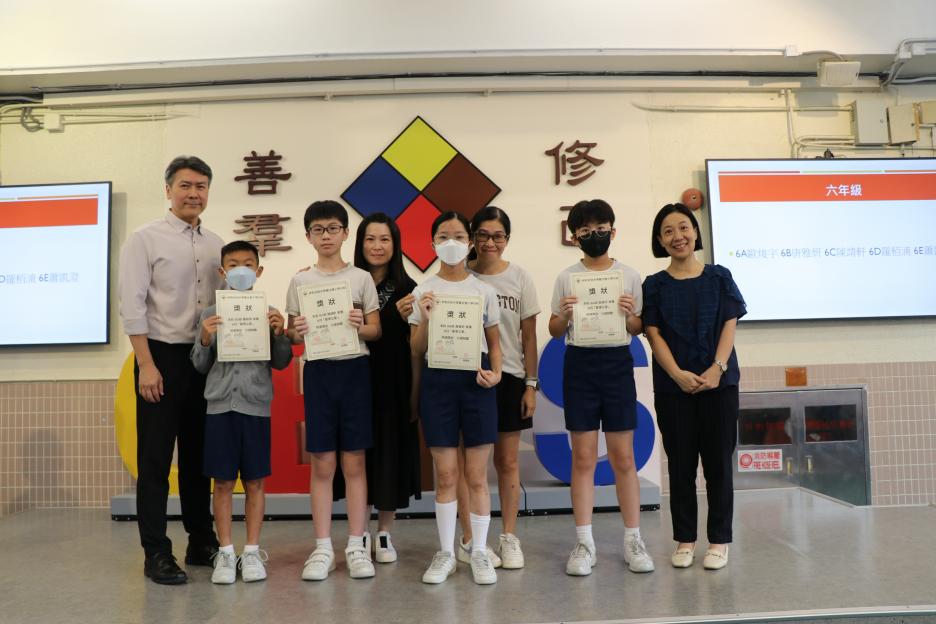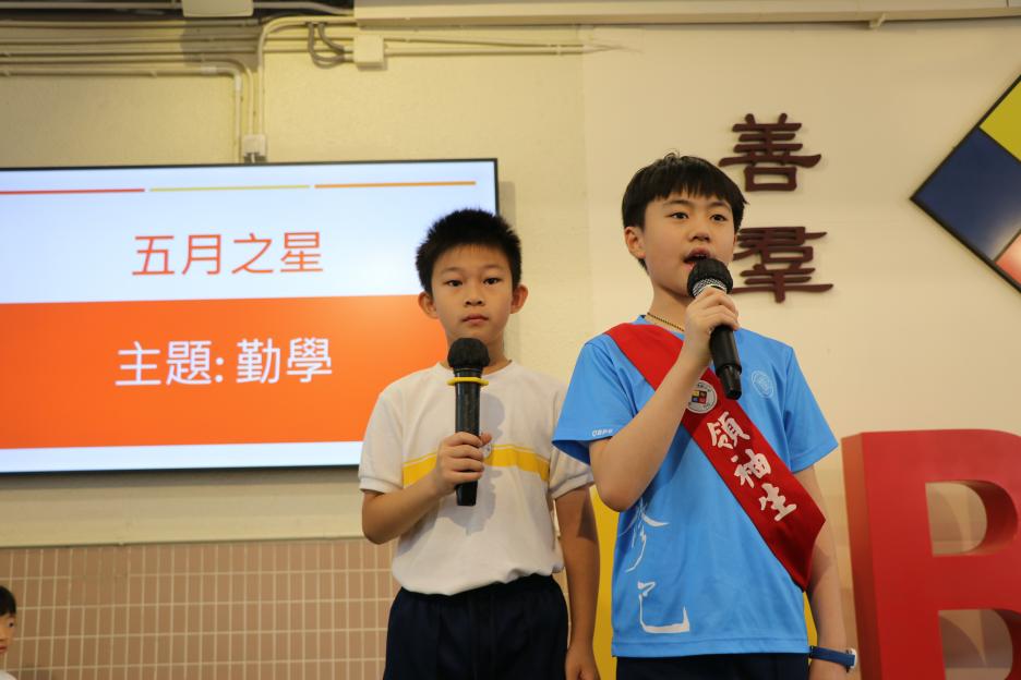 今天的普通話早會首先頒發的是「每月之星-勤學」獎項,然後是舞蹈團和科技科的「紙飛機大賽」的頒獎環節。