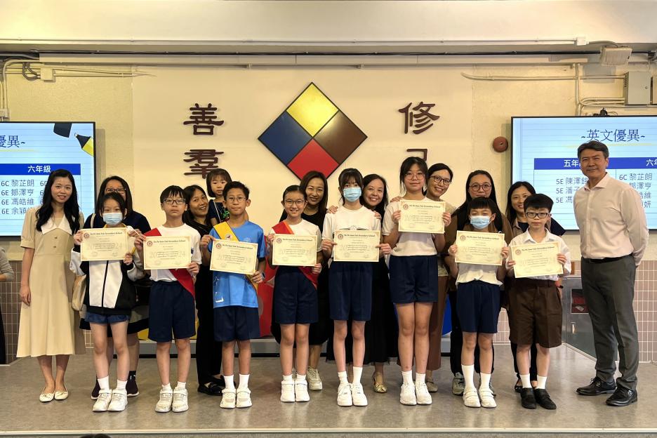 今天的英文科組會由「English Buddies」 帶領大家做有趣的熱身運動。接着由葉老師分享「清潔牙齒」這本特別的圖書。最後是閱讀獎項、中英文作文比賽和學界游泳比賽的頒獎活動和學生分享比賽的心得。