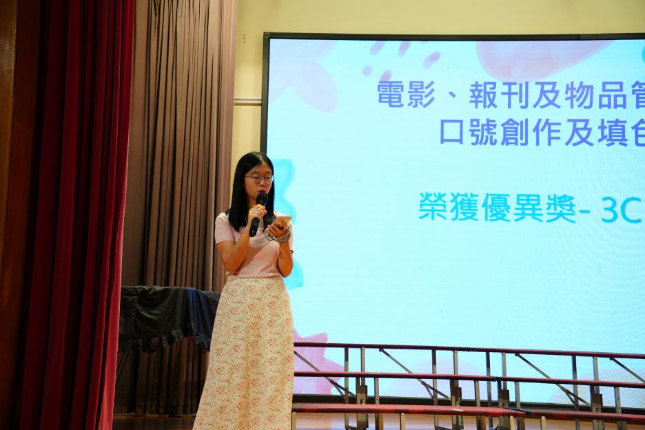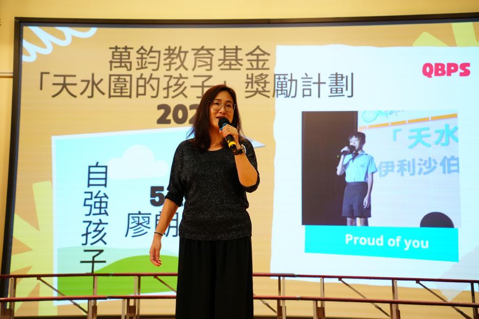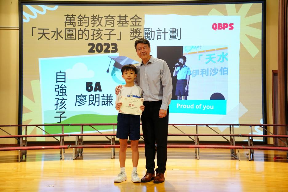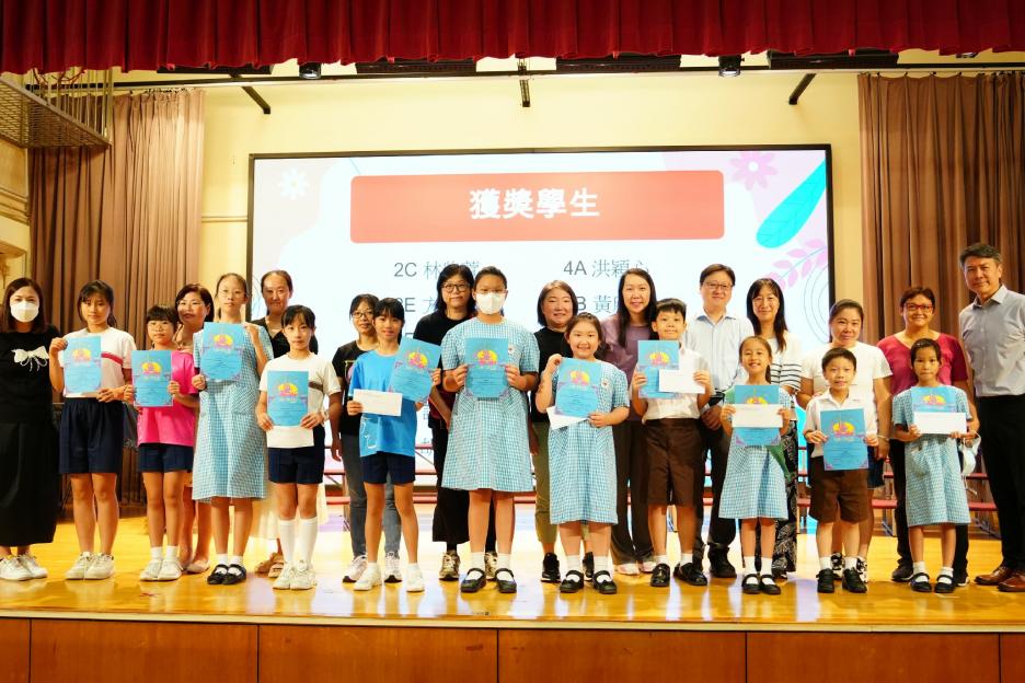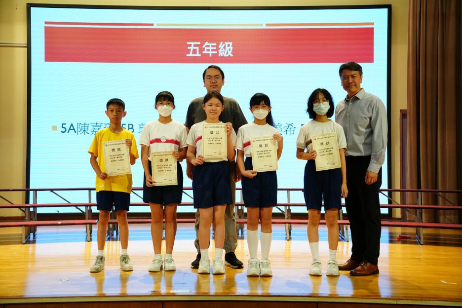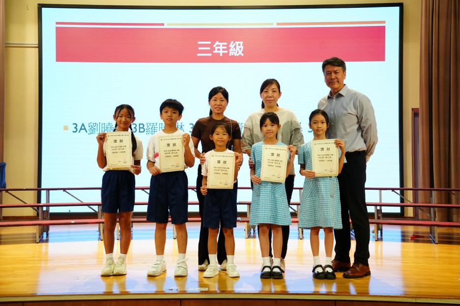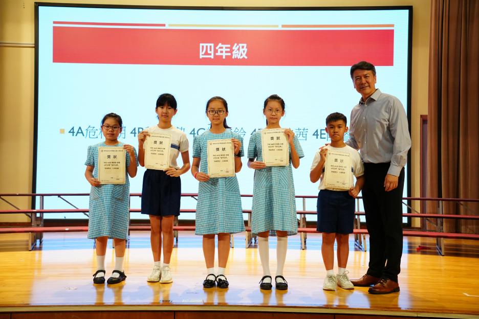 本年度最後一個早會,剛巧亦是六年級放榜的大日子,所以今天的早會在禮堂頒獎和課室進行直播。首先分享的喜悅是足球隊在友校的比賽中奪冠,然後是家校組「伴你高飛」的獎項頒發,而對象正正是非常支持學校的家長。接着是「每月之星」、「回歸標語創作比賽」和視藝科比賽的頒獎。最後是「天水圍的孩子」得獎學生向大家分享得獎感受並如何成為「自強孩子」的經歷。