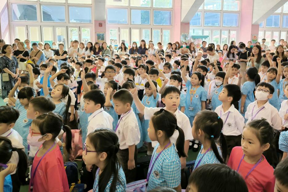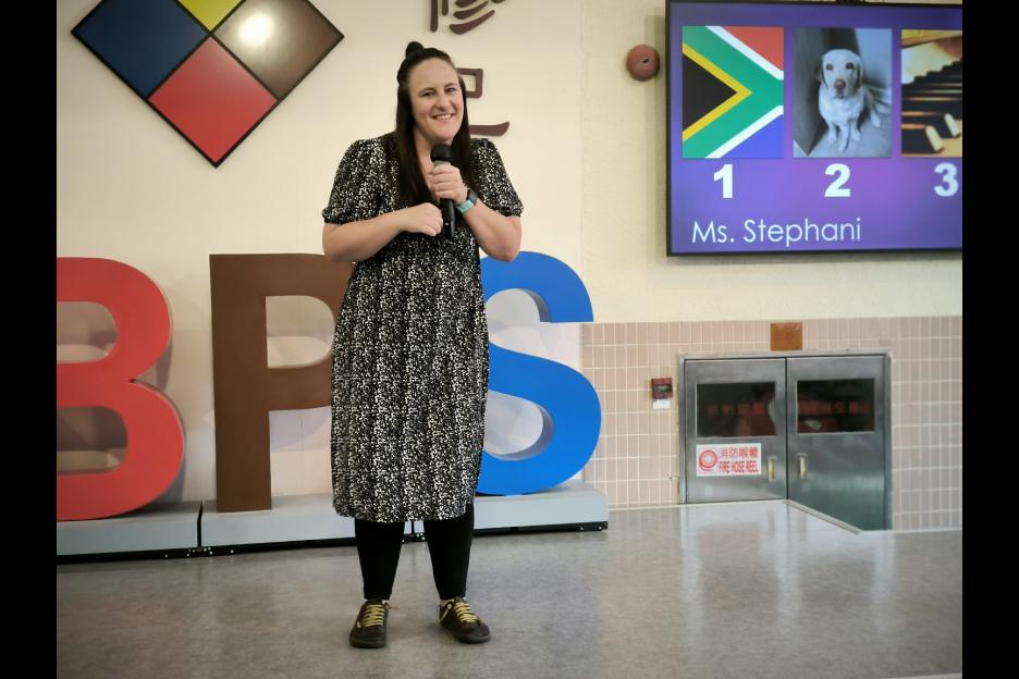 今天是本年度伊分的第一次英文早會,也是第一次家長可以參與的早會。五位外籍老師和新加入伊分大家庭的英文老師逐一上台介紹自己。另外恭喜3位六年級的同學獲得「全港中小學創客大賽2023-2024」小學組冠軍,他們的作品叫做老友小管家。