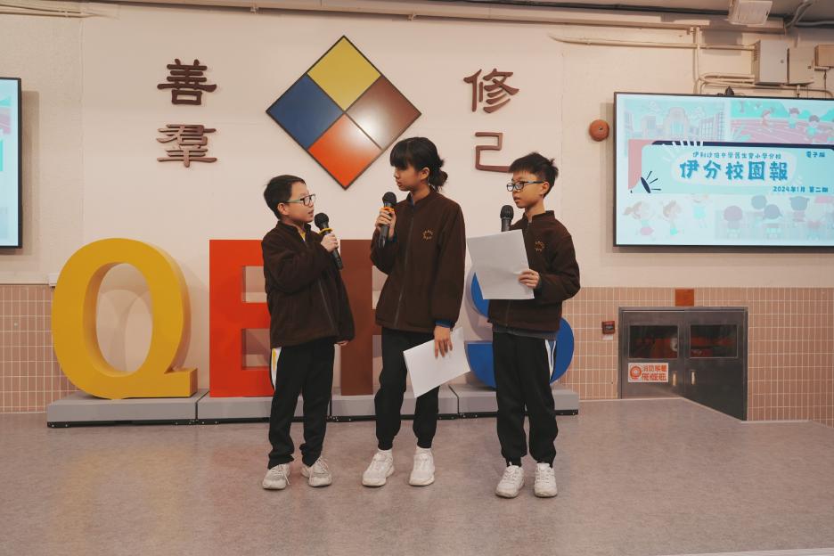 今天是上學期期考後的第一個早會,也是普通話早會。首先是Greenstarter的頒獎,恭喜在「惜水學堂」小學教育計劃中獲得多個獎項。接著恭喜12月孝親之星的同學。再來是伊分校園報的宣傳,第二期快要推出啦!最後是1月24號中華文化日的宣傳,同學們可以在當天穿著中華文化服飾,今年還會增設最佳服飾獎呢!