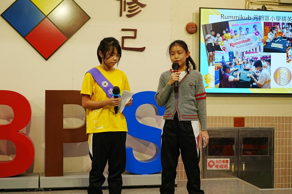 今天是普通話早會,首先頒發憲法和基本法學生校園大使計劃委任狀。然後是「Rummikub 元朗區小學精英賽 2025」的頒獎。最後是領袖生、便服日和伊Class計劃的宣傳。