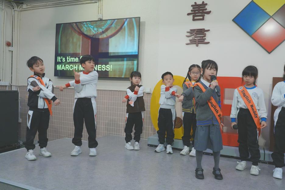 今天是英文早會。由English Buddies生動有趣地表演「MARCH MADNESS」,以宣傳3月3日午膳小息的打籃球活動。歡迎各位同學踴躍參加!