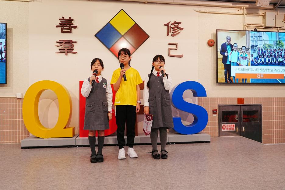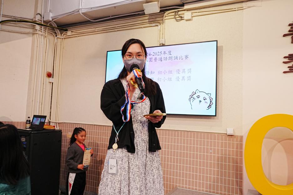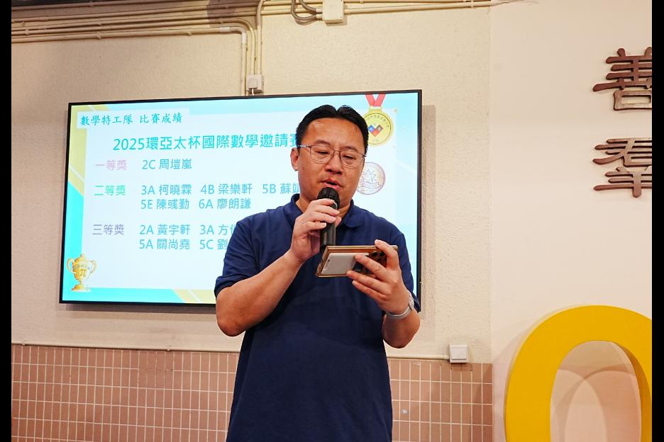 今天是普通話早會,節目相當豐富。早會開始前,曾老師講解了太空油的禍害,提醒我們吸食太空油是違法行為,切勿以身試法。早會打頭陣的中文科小小演説家為我們帶來守法的故事。接著是一系列的頒獎,恭喜普通話科在「2024-2025年度屯門及天水圍普通話朗誦比賽」獲得初小組優異獎,以及在「2023-2024年度樂遊香港文化—短片製作及問答比賽」(非遺傳統手工藝篇)獲得初小組和高小組的優異獎。恭喜數學特工隊在「2025環亞太杯國際數學邀請賽初賽」獲得一得獎、二等獎及三等獎。恭喜足球隊在「第九屆侯寶垣盃小學五人足球邀請賽-盾賽組」獲得冠軍。恭喜合唱團榮獲「第77屆香港學校音樂節比賽」冠軍。最後是人文科主辦的「小嘴巴說故事」宣傳,期望同學們能一起從閱讀/聽故事中學習中華文化吧!