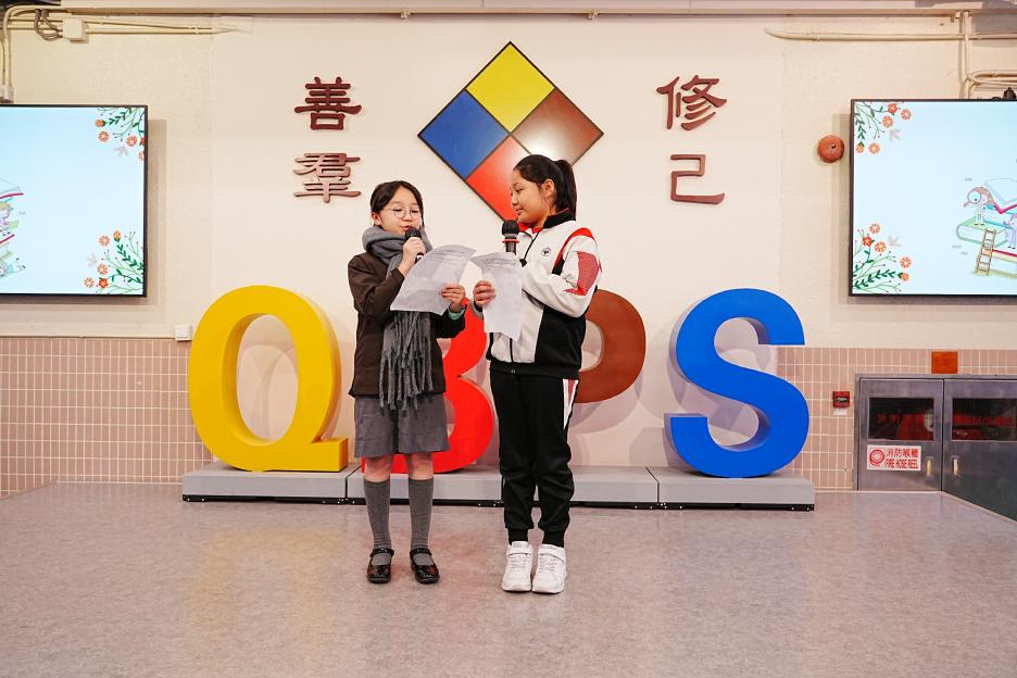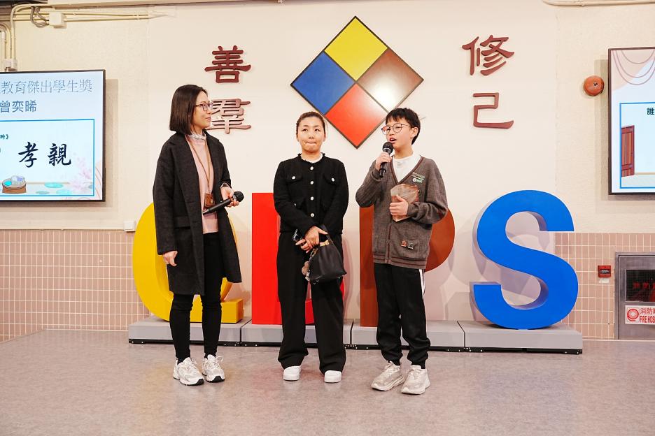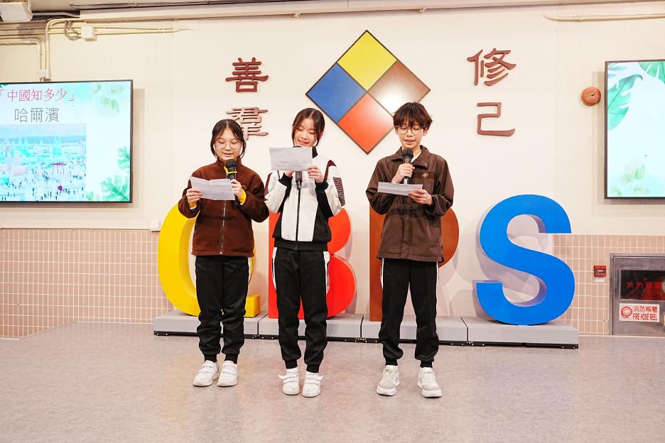 今天是普通話早會。首先中華文化大使為我們帶來「中國知多少」的環節,今天向我們介紹哈爾濱的特色。接著是高老師主持的頒獎,恭喜六年級的曾同學獲得了「2025價值觀教育傑出學生獎」,他的媽媽也有上台感受這份喜悦呢!我們也要像曾同學那樣,孝順家人。再來是數學科的好消息,恭喜數學特工隊的同學在「第三屆羅桂祥中學數理科技盃」中,得到一等獎和二等獎。最後是「伊分閲讀月」和「423閲讀日活動」的宣傳,希望同學們都能感受到閲讀帶來的樂趣。