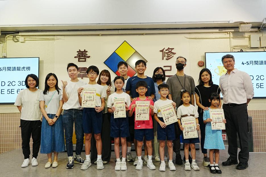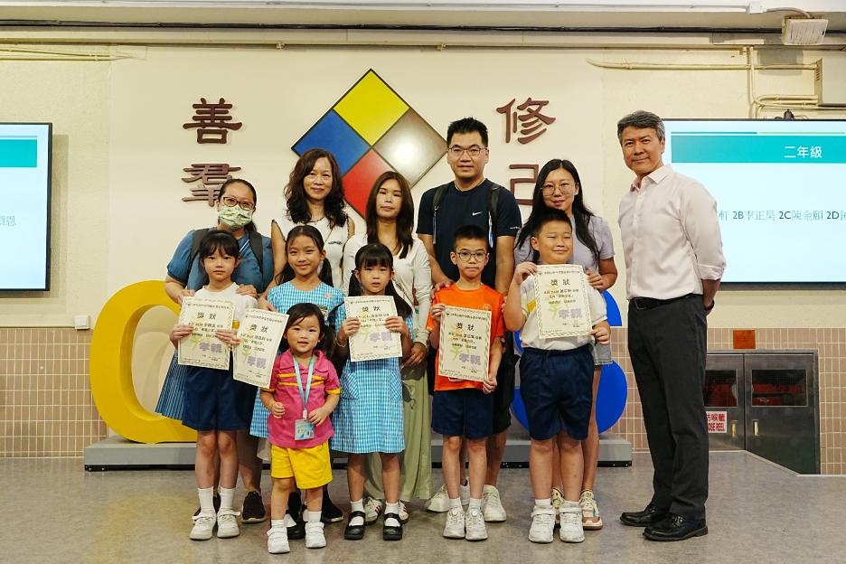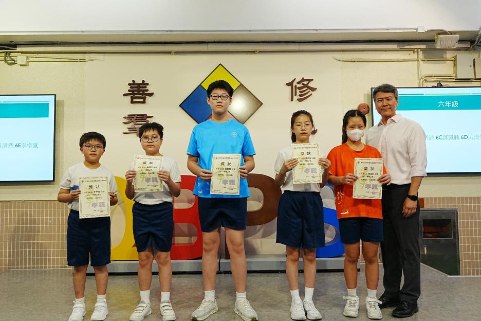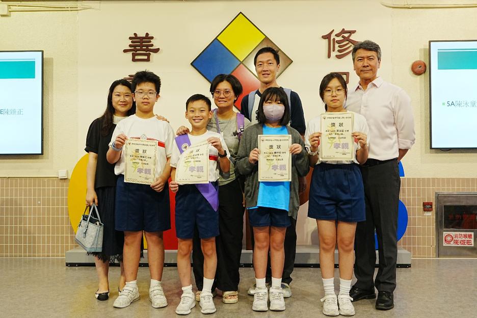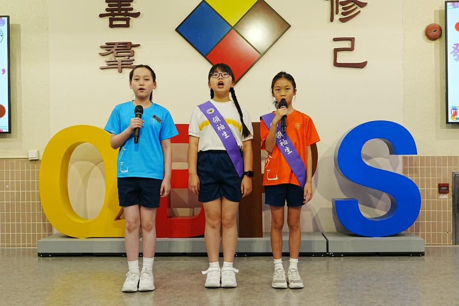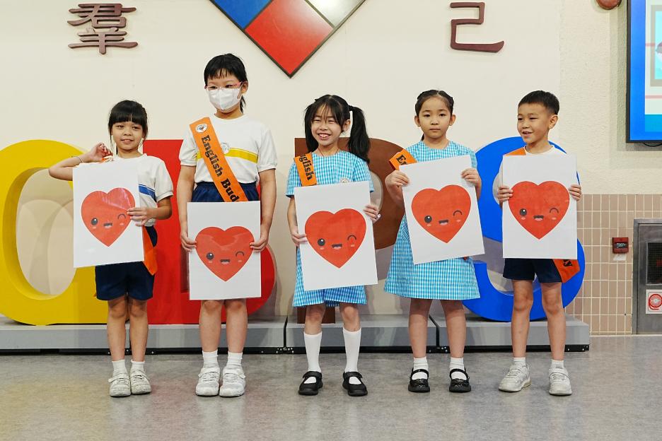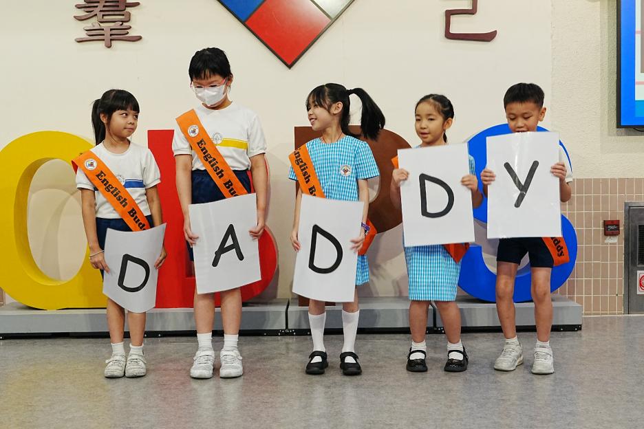 今天是英文早會,即將來到的星期日便是父親節,英文大使帶領我們唱出父親節的歌曲,同學們都很喜歡呢!祝天下的父親父親節快樂!接著是5月孝親之星的頒獎,恭喜各位孝子孝女得到這個獎項!再來是班際借書龍虎榜的頒獎,恭喜1D、2C、3D、4E、5E和6E班。最後是數學科活動的宣傳。
