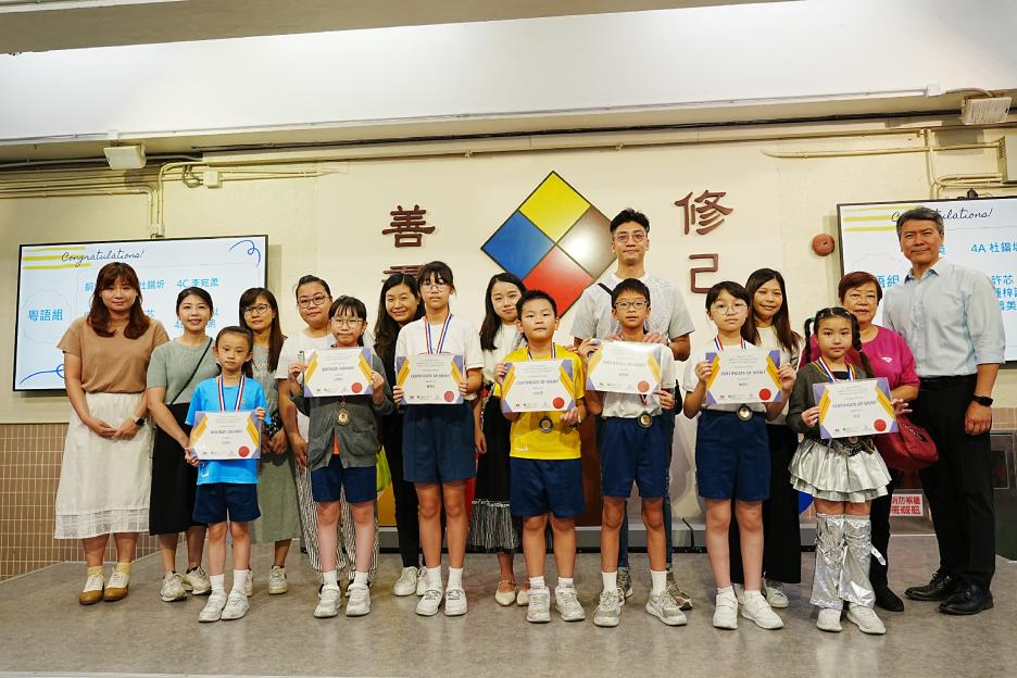 今天是普通話早會,節目相當豐富。剛過去的五月,好學生選舉已順利完成,同學們精采的演出為我們留下了深刻的印象,首先是二至六年級好學生代表的頒獎和分享。再來是「第二十七屆元朗區小學生價值觀教育故事演講比賽」的頒獎,恭喜我校同學在粵語組、普通話組和英語組都得到好成績。接著是視藝科的頒獎,恭喜同學在「創意學⽣獎勵計劃」、「學⽣視覺藝術作品展24/25」、「全港中⼩學航天畫比賽」和「道地」暨「MEKO」全港⼩學⽣ 創意徵⽂及美術⽐賽2024賽均有出色的表現。最後是無煙運動日的宣傳。