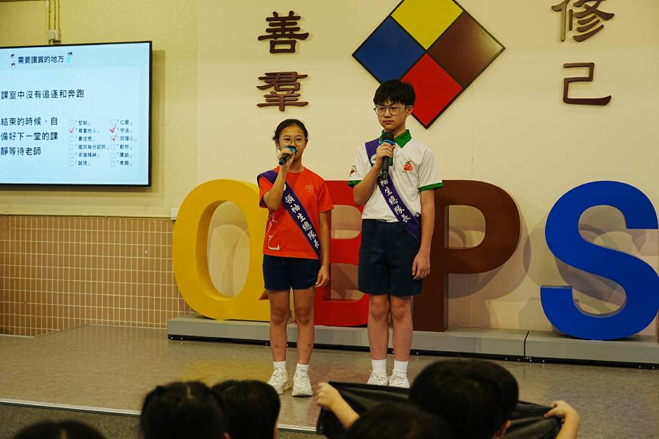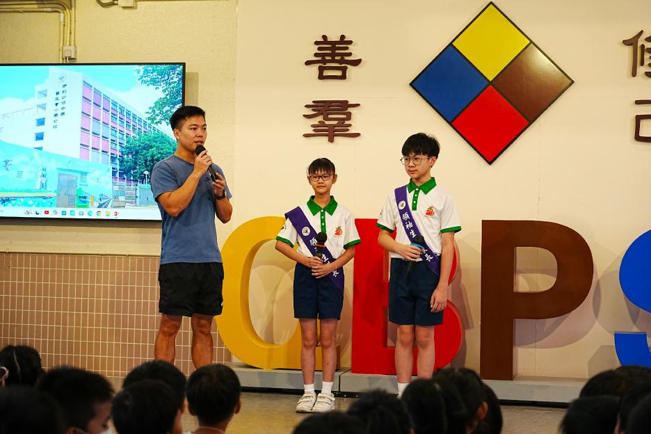 今天是英文早會,也是颱風復課後的早會,歷過風雨,希望同學們更珍惜上學的日子。今天早會節目豐富,我校在華萃薪傳第五屆全港小學中國歷史文化問答比賽中,得到最積極參與學校獎、18區卓越表現獎元朗區第二名,派上代表領獎。再來由憲法和基本法學生校園大使介紹中國農民豐收節。接著是領袖生宣傳職責。最後是宣傳Greenstarter 獎勵計劃。