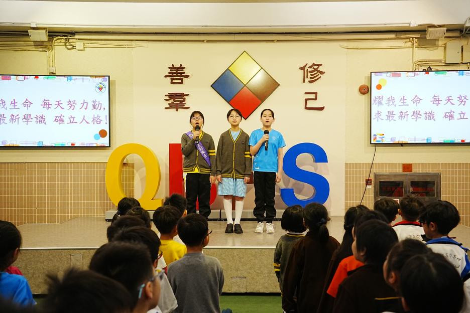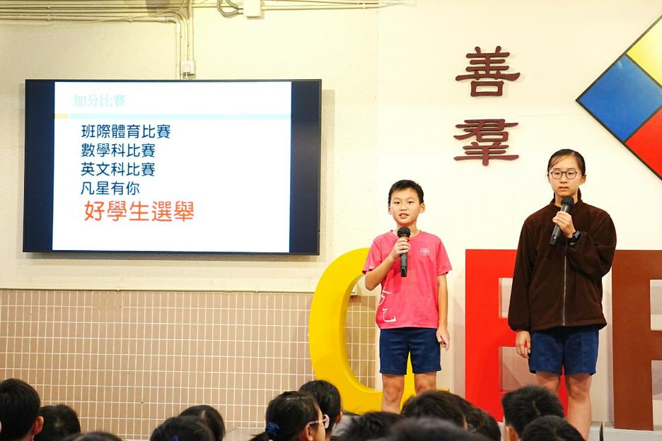 今天是英文早會。今天有一系列的頒獎,首先有英文科的Hong Kong Children & Youth Speech Competition的頒獎,接著是頒發每月之星(勤勞),欣賞得獎同學勇於承擔及勤奮向上的精神,並學會欣賞、尊重別人辛勞的付出。再來恭喜足球校隊在INFINITY五人足球挑戰賽2026小學組盃賽組得到好成績!最後是伊class獎勵計劃的宣傳。