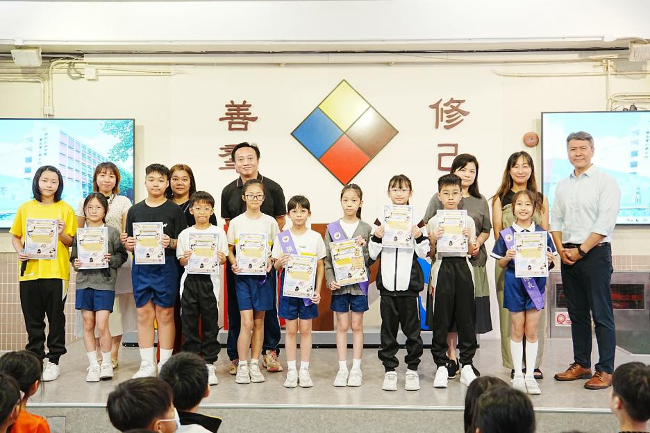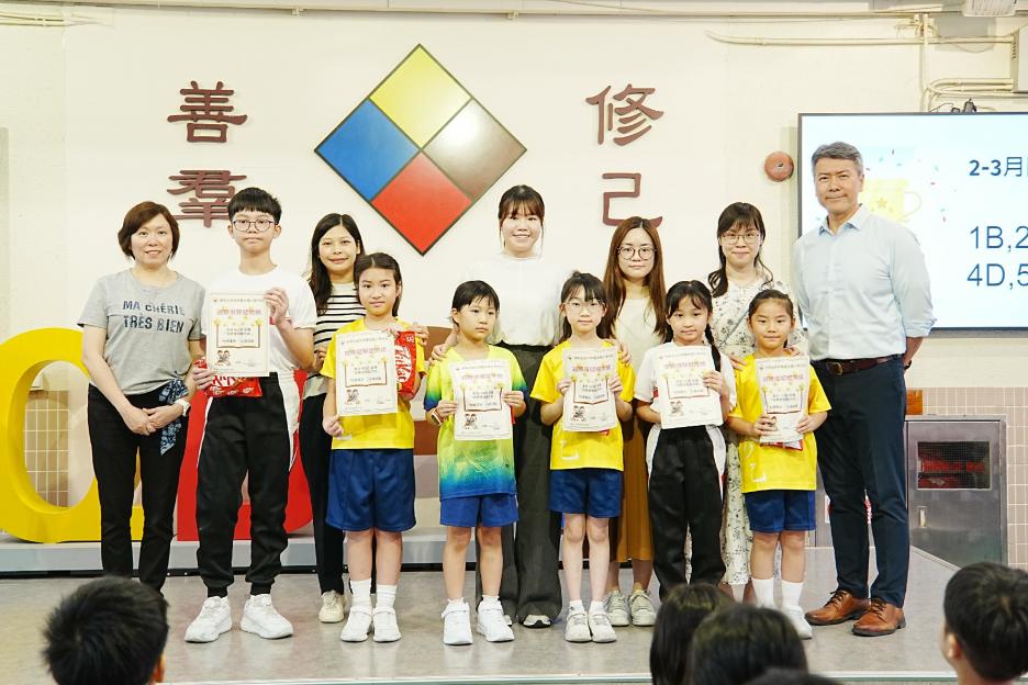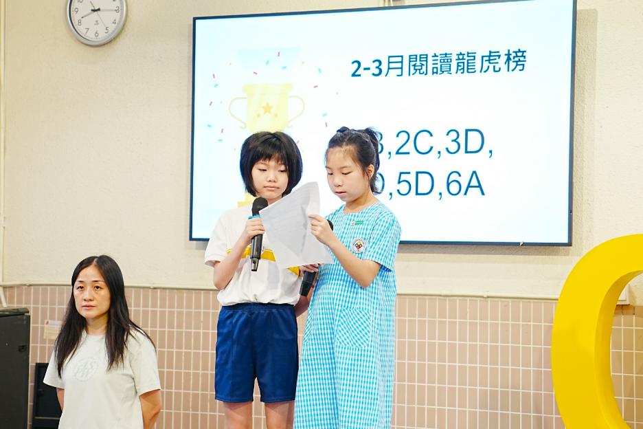 今天是普通話早會,也是復活節假期後的第一次早會。首先由頒獎2-3月班際借閲龍虎榜第一的班別,恭喜1B,2C,3D,4D,5D,6A班。接著是頒獎時間,我校籃球隊、羽毛球及足球校隊在多項比賽得到佳績,最後是校園電視台同學在屯元天小學生「防騙、防毒,守護你我」REELS創作比賽獲獎。